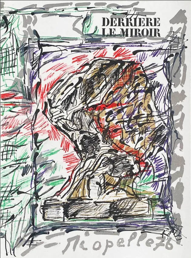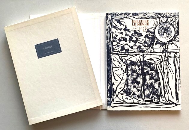 "Derrière le miroir" (DLM pour les habitués) est une revue d'art éditée en France par la Galerie Maeght de 1946 à 1982. La Galerie Maeght, une des plus célèbres de l'après-guerre, comptait parmi ses artistes plusieurs des plus grands noms de l'époque tels Alberto Giacometti, Georges Braque, Joan Miró, Vassily Kandinsky, Henri Matisse, Marc Chagall, etc. Riopelle rejoint ce groupe sélect à partir de 1966.